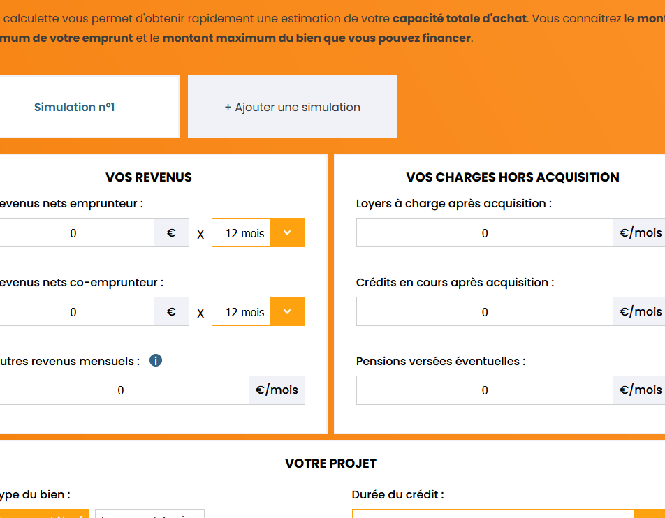 - Loyer actuel : Si nous louons déjà un logement, cela impactera notre taux d’endettement.